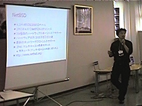 ちょっとNBUGのブースに目をやると、成田さんが(数少ない)女性客に説明をされていました。「MSなOSでもFreeUNIXでも、みてくれはおんなじでしょ」(っていってたかどうかは定かではありません。:-))