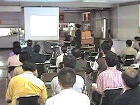 まずは、講演「未定ソフトウェア想像授業」から。講師はg新部さんです。朝からたくさんお客さんがおいで下さいました。