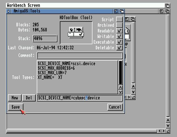 これで$HOME/FS-UAE/Kickstarts/cyberstormppc.romの中身が作成されてA1200でもSCSIが使えるようになります。