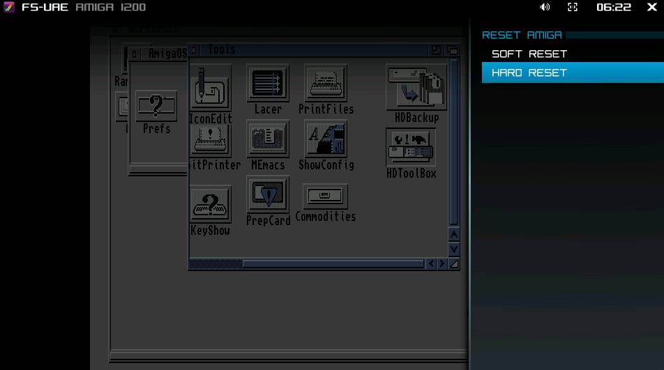 F12を押してカーソルキーでRESET AMIGAまで移動してリターンキーを押します。