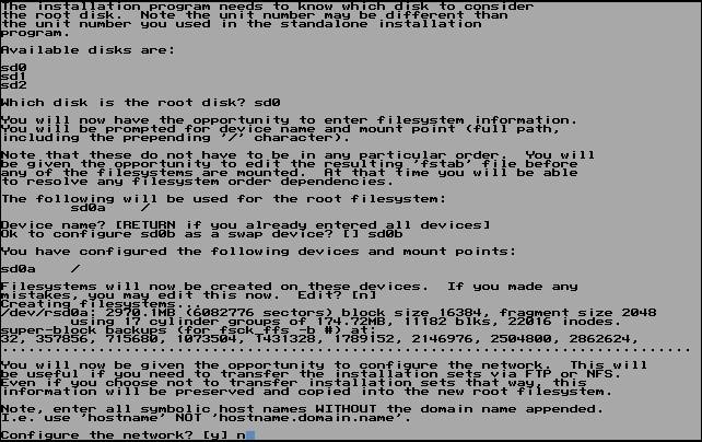 Which disk is the root disk ?はsd0を入力します。
