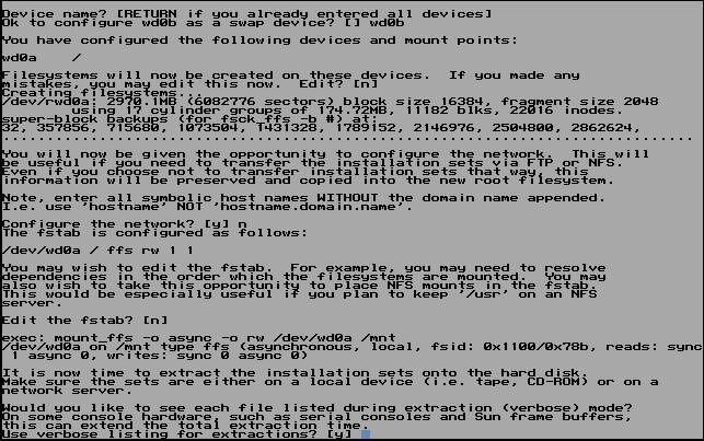 Ok to configure wd0b as a swap device? []はsd0bを入力、