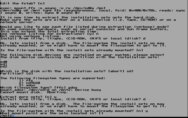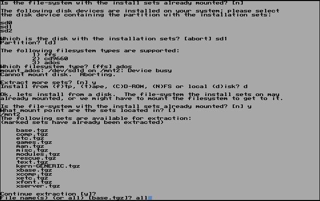 Is the file-system with the install sets already mounted? [n]はyを入力、