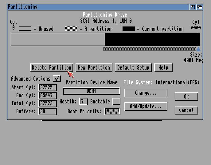 AmigaOSの制限で4GB以上はパーティション作成で問題が発生しますが回避は可能です。