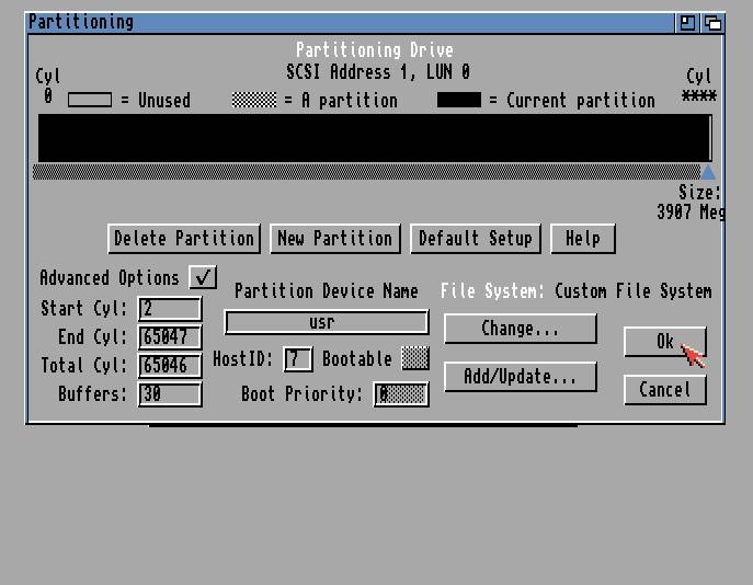 増設ディスクがある場合はこの表示でcylinder数を覚えておきましょう。(上記例では65048)